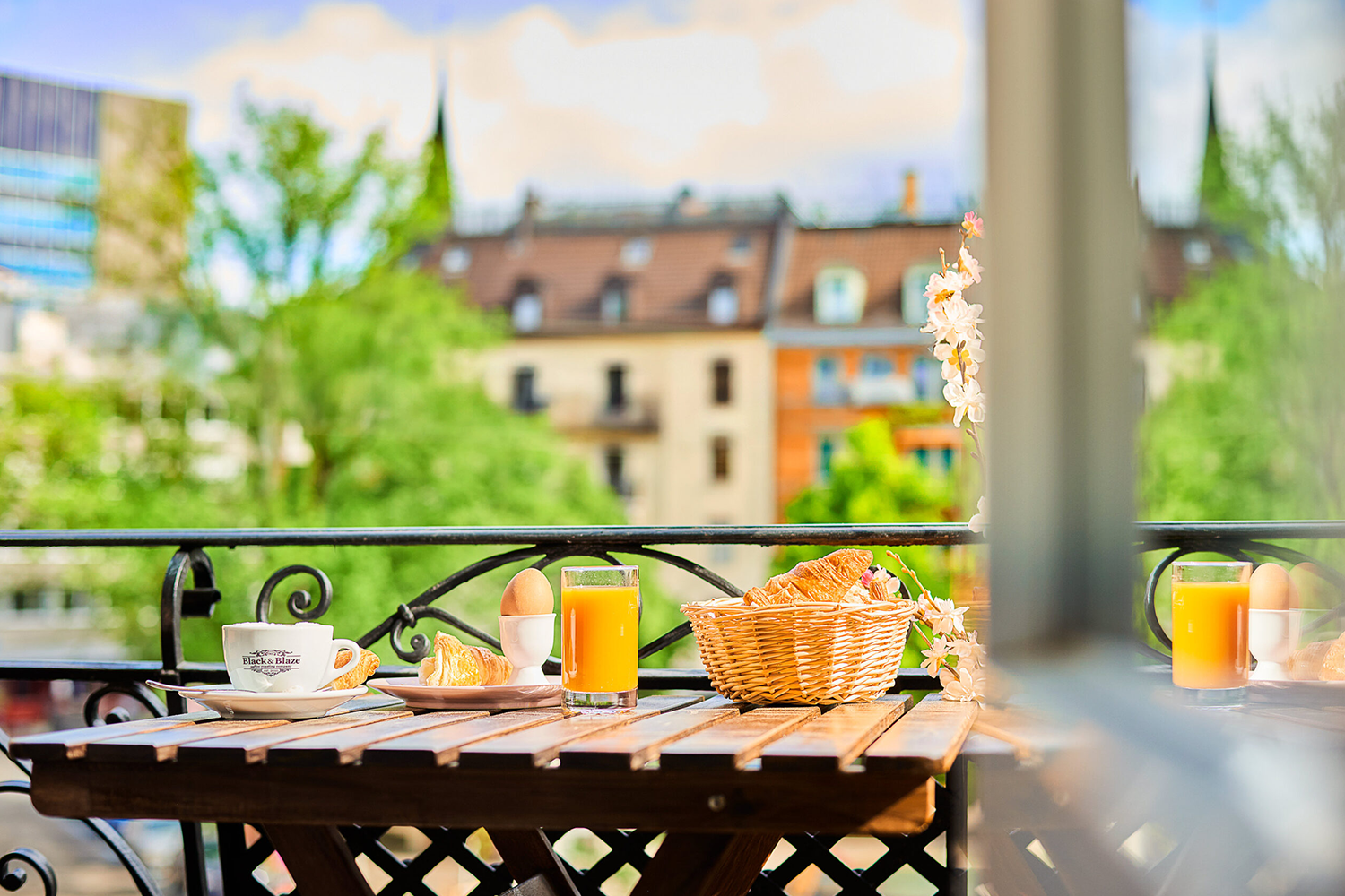 Willkommen bei Familie Renaud im B&B Saint Georges Hotel. Viele Geschäftsleute und Urlauber lieben unsere zentrale Lage in Zürich. Beim Empfang an kühlen Tagen, werden Sie sich am offenen Kamin in der Lobby wohlfühlen. Unsere Zimmer sind trendig und sauber, bieten Dusche, WC, kostenloses W-Lan und teilweise romantische Balkone als grüne Oasen. Unsere Budget-Zimmer Kategorien für preisbewusste Traveler teilen sich ein gemeinsames Bad, sowie eine separate Toilette. Das Frühstücksbüffet lässt keine Wünsche offen, Käse, Milchprodukte und feiner Aufschnitt aus der Region, sowie frisch gebrühter Kaffee von Black & Blaze aus unserer Stadt und erlesene Tees von Ronnefeldt runden unser Angebot ab. Ausserdem, aus all unseren Leitungen fliesst belebtes Granderwasser – bestes Trinkwasser.